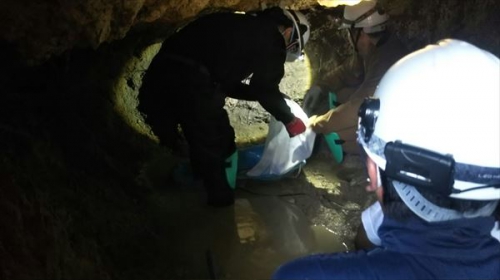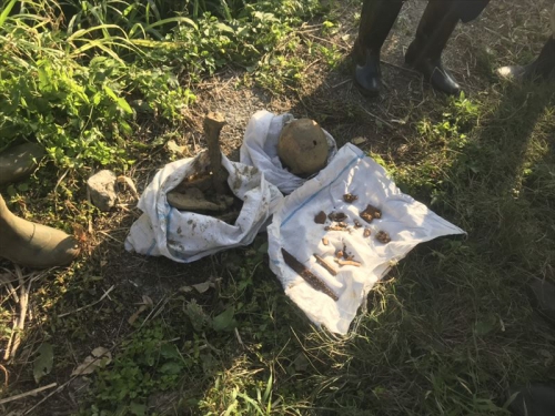 私の参加した現場では、到着するとすぐ地面の上に御遺骨がありました。豪の中は水がたまっていて、粘土質の土のため足を動かすのも大変でした。かがんで掘り進めるのもとても大変でした。