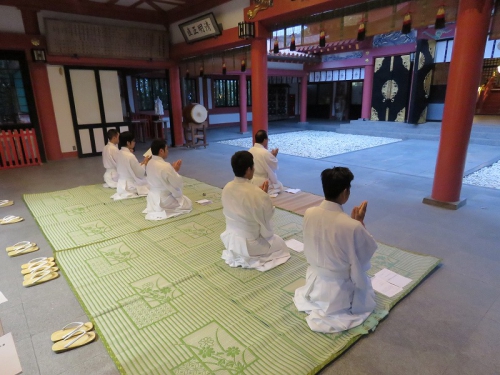 田港道彦の先導のもと、午前5時より波之上ビーチにて禊、その後波上宮拝殿にて鎮魂行法と北方領土返還祈願祭を行いました。